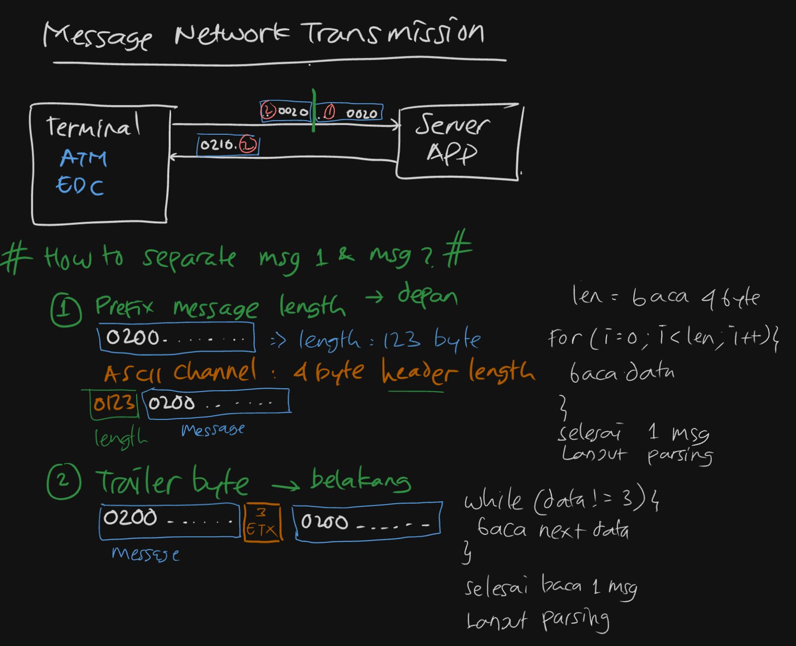 Pada artikel ini kita fokus pada prefix message length yang lebih umum digunakan, terutama di protokol perbankan.