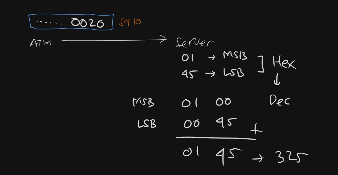 Jadi message length 325 byte direpresentasikan sebagai 2 byte hexadecimal: 01 45