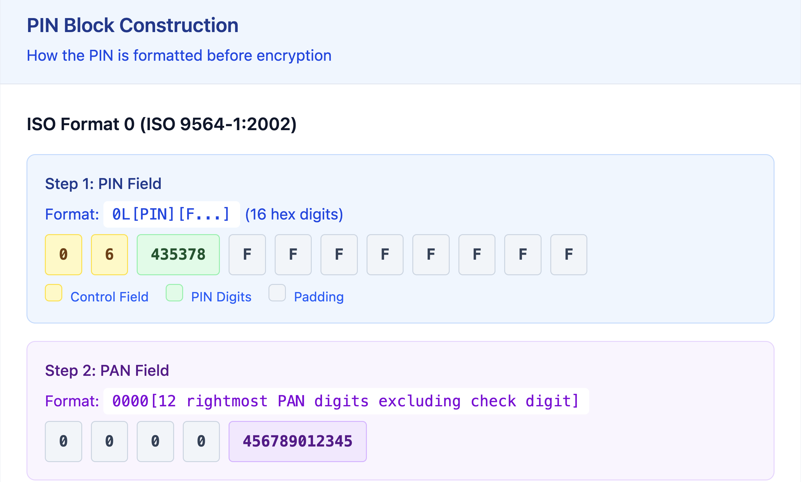 Aplikasi ini tidak untuk production use, murni untuk edukasi. Tujuannya adalah agar mahasiswa bisa melihat langsung bagaimana perhitungan PIN Block dilakukan step-by-step, bukan sekedar dapat hasil akhir saja.