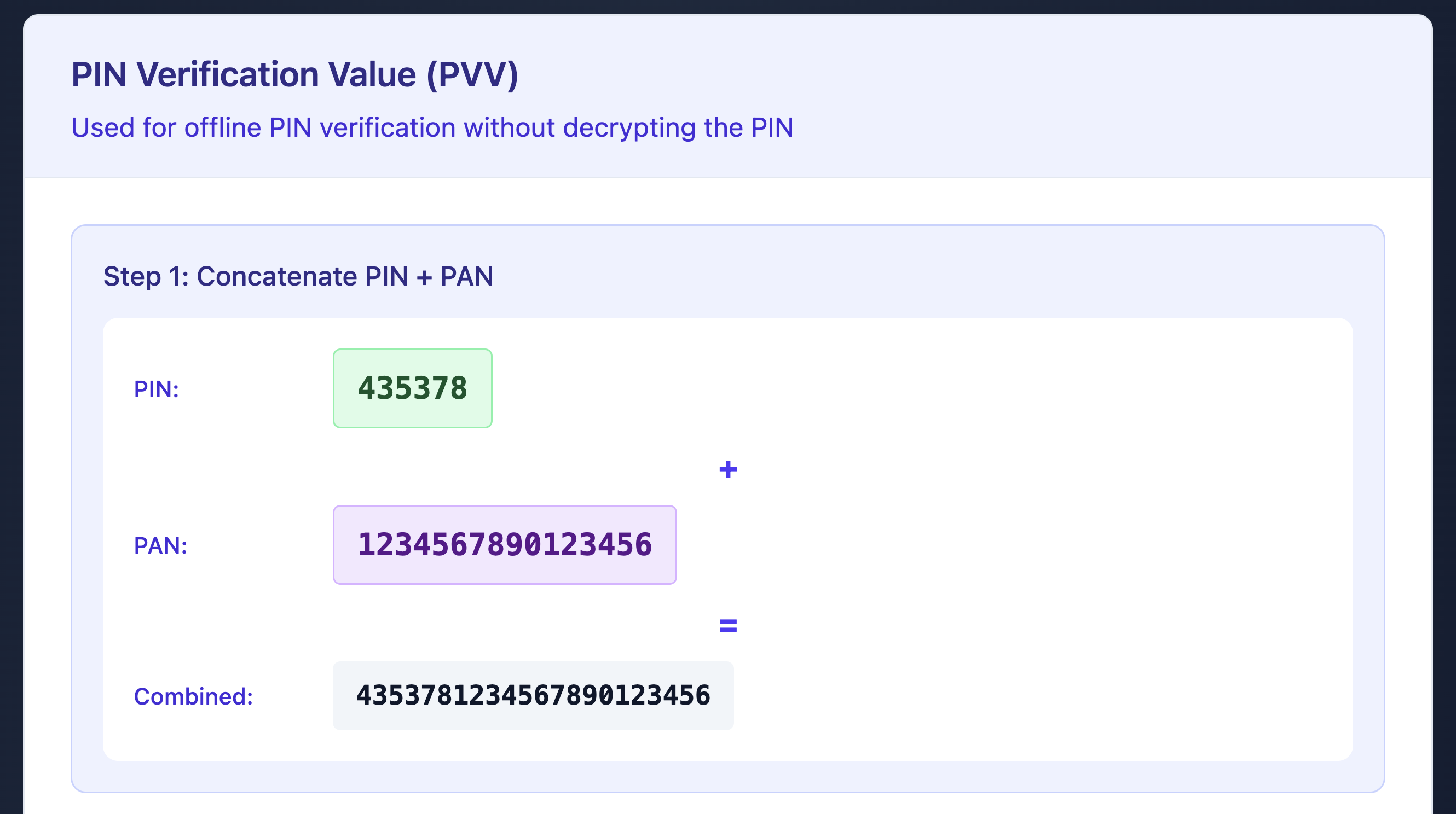 PVV digunakan untuk verifikasi PIN secara offline tanpa perlu mendekripsi PIN Block. Cara kerjanya: