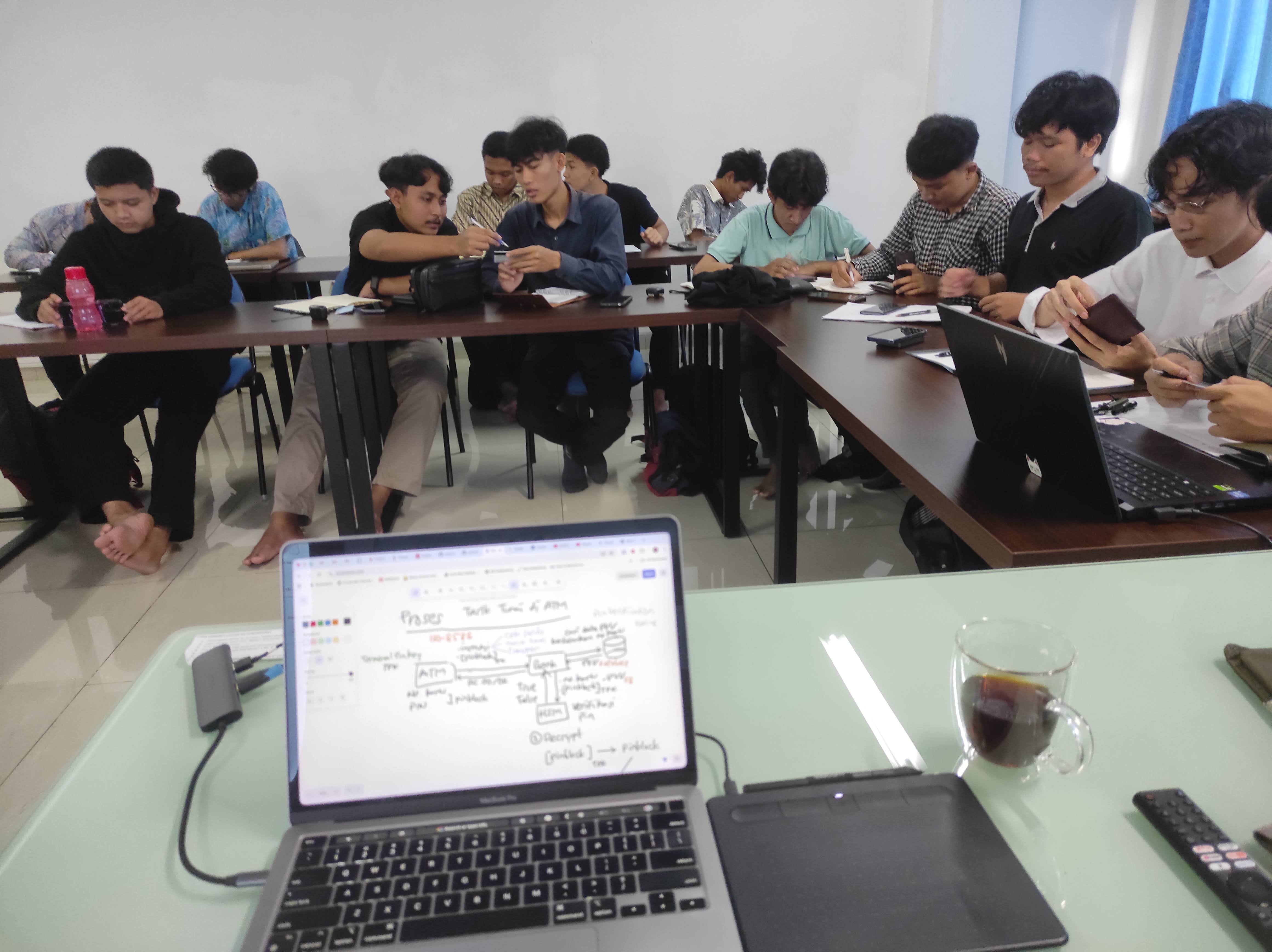 Dalam sesi praktik, mahasiswa diminta untuk menghitung secara manual konversi sistem bilangan dan operasi XOR. Ini penting untuk memastikan mereka benar-benar paham konsepnya, bukan hanya copy-paste kode.